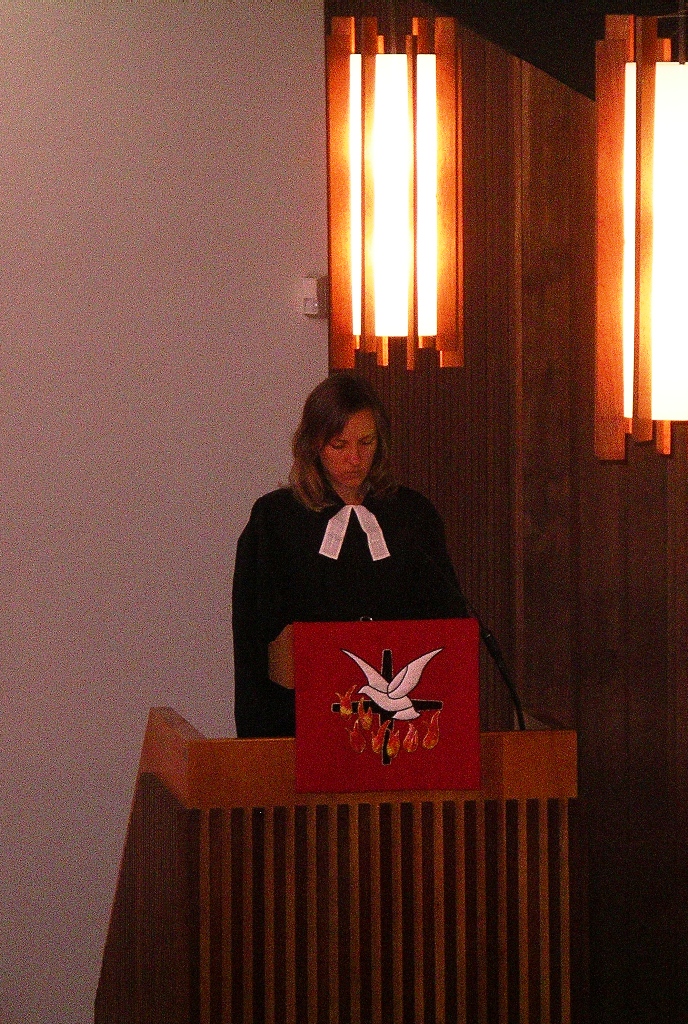 Svētbrīdi novadīja draudzes macītājs Colvin MacPherson kopā ar draudzes vikāri Lauru Skrābāni. Prāvests uzsvēra ka Dievs savā mīlestībā mums devis dāvanu – savu Dēlu. Nepietiek ar zināšanu, bet šo dāvanu vajaga katram no Dieva saņemt. Vikāre novadīja pateicības lūgšanu.